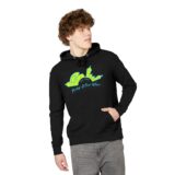 Soft, midweight French terry with a relaxed, everyday silhouette. This hoodie feels lived-in from day one: the three-panel, self-lined hood tucks close with a dyed-to-match drawcord and metal grommets; the half-moon patch and twill neck tape add subtle, tailored details; and tear-away labels keep the back of the neck itch-free. The graphic sits on a smooth, combed-cotton face for vivid color and a clean print surface. Wear it pulled up after a morning run, layered over a tee for late-night studio sessions, or draped on the couch while sketching ideas — it moves with you and holds its shape thanks to durable double-needle stitching and a thoughtfully balanced cotton/recycled-poly blend.