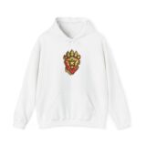 This soft, mid-weight hoodie carries a quiet confidence. A hand-drawn lion emblem sits inside a warm gold ring on the chest, edged with subtle scripted text — an emblem that feels like a personal crest. The fleece-lined fabric moves with you, holds heat without bulk, and the roomy kangaroo pocket and adjustable hood make it a go-to layer for crisp mornings, late-night walks, or studio sessions. Wear it to anchor a minimalist outfit or to layer under a coat when the temperature drops. It reads like a familiar companion: sturdy, thoughtfully detailed, and made to travel with you.