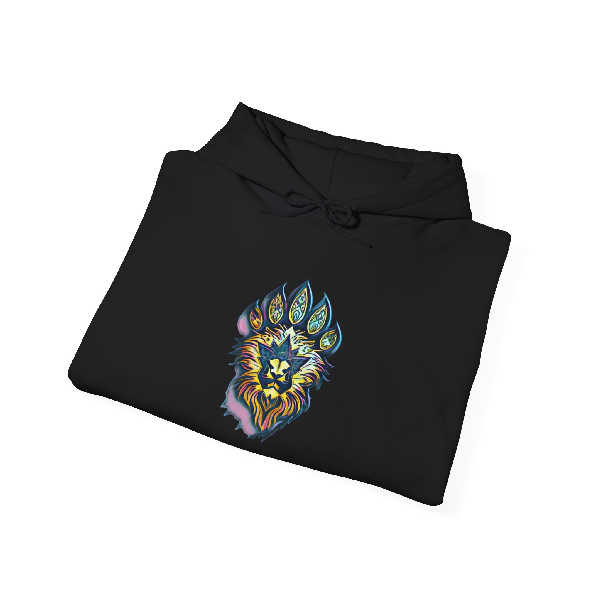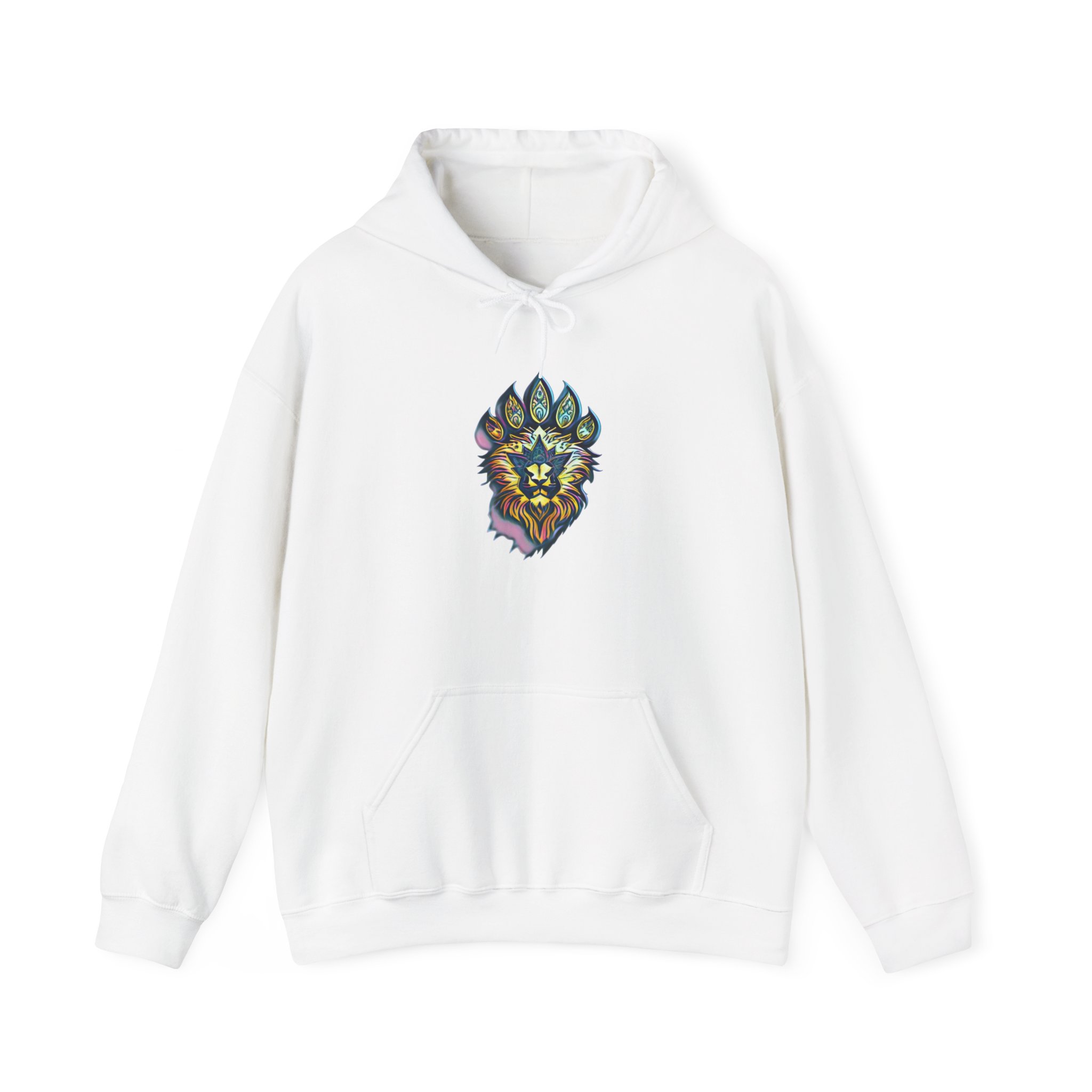 Lion Paw Crest Hoodie — Colorful Mandala Lion Face Pullover